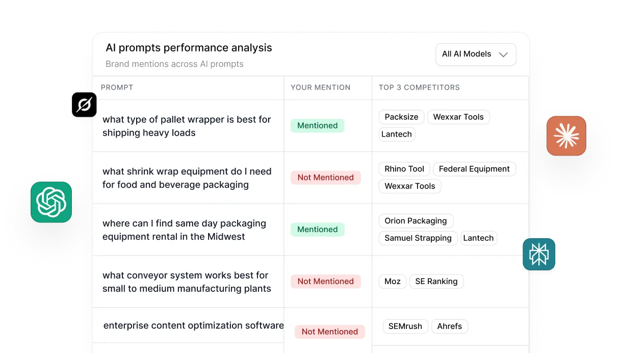 Track when your brand or content gets referenced in ChatGPT, Perplexity, and other AI tools.