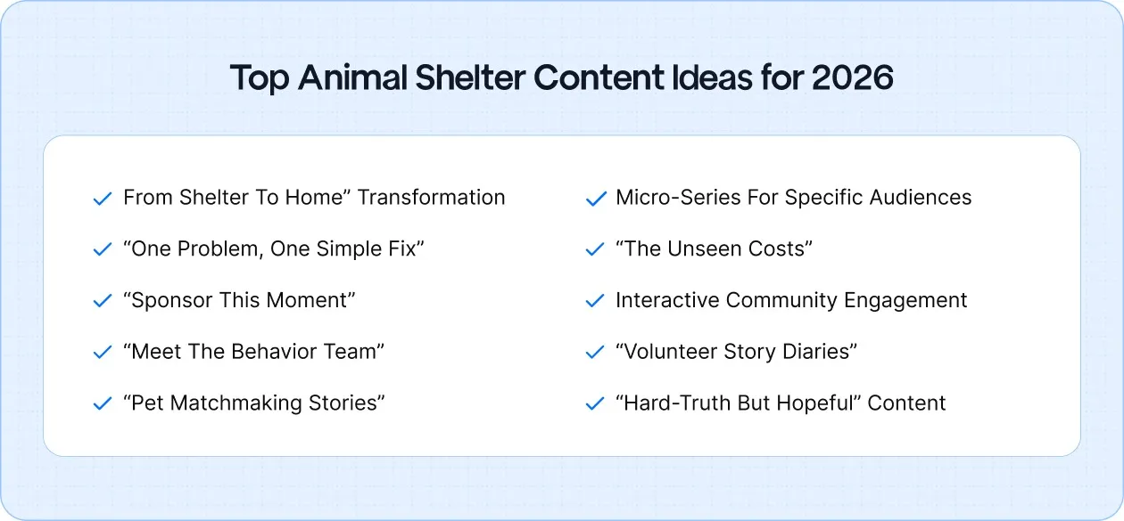 • Topics like animal care standards, adoption preparation, or community challenges tend to perform better than organizational updates.