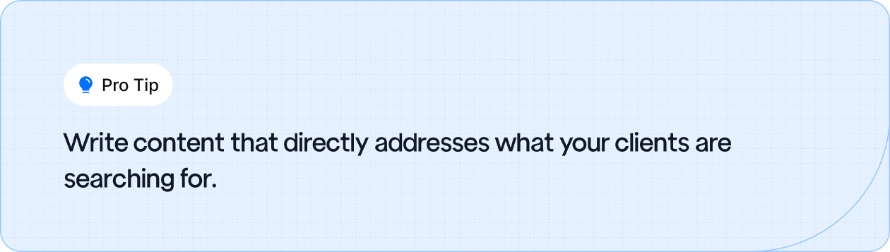 Beyond local SEO, you’ll want your website pages to be optimized so you show up when people search for your services. Important elements include: