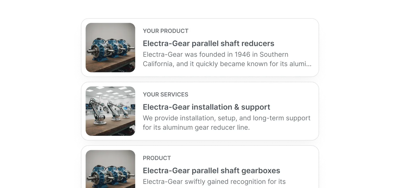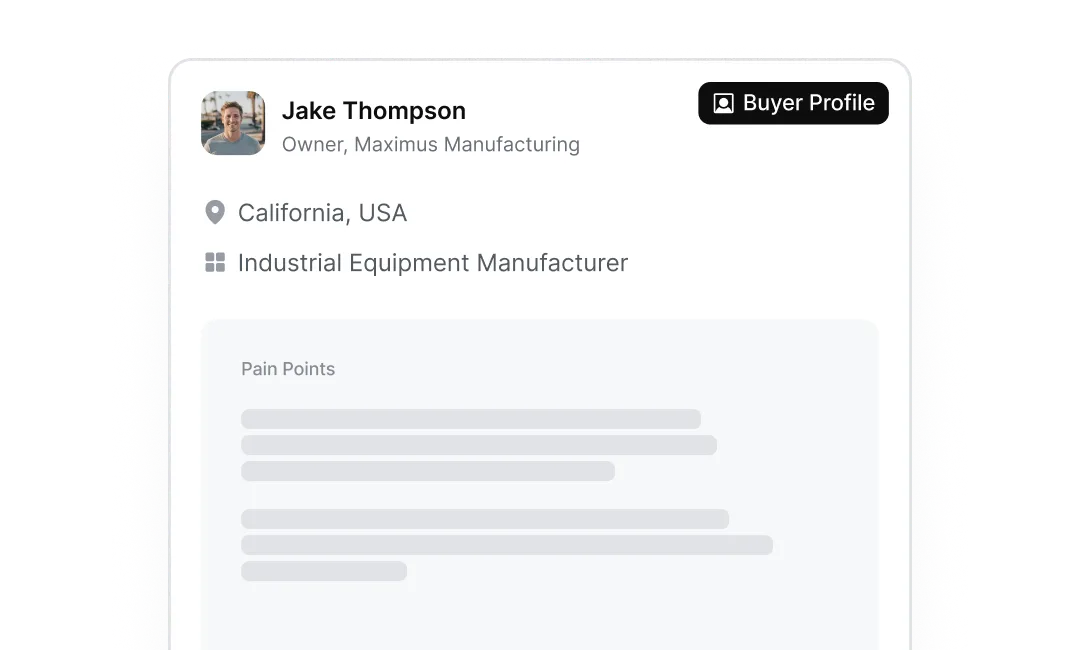 Job titles, industries, pain points, buying triggers. Stored once, applied to every piece of content.