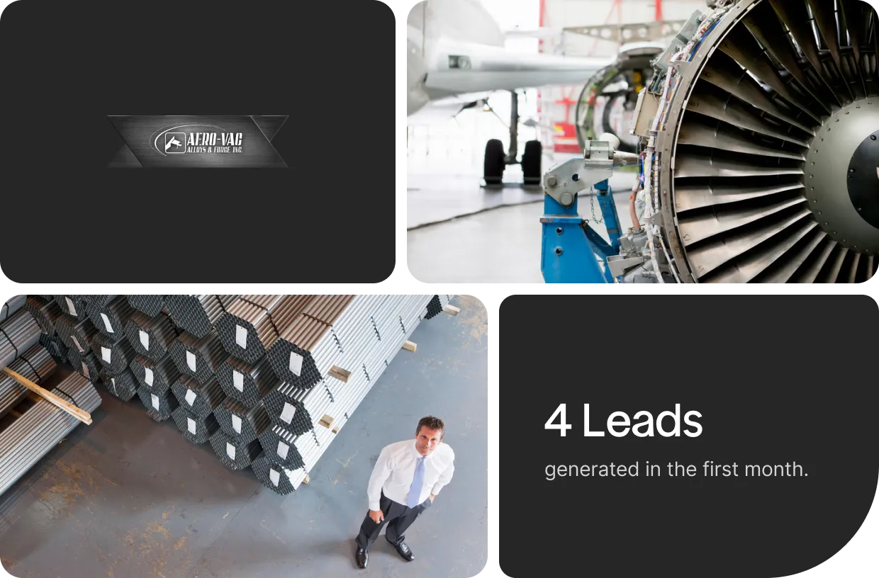 Aerovac Alloys & Forge, despite being a top supplier, had almost no discoverability online. Their website didn’t generate inquiries, and most leads came from referrals, word of mouth, industry contacts, or seasonal trade shows.