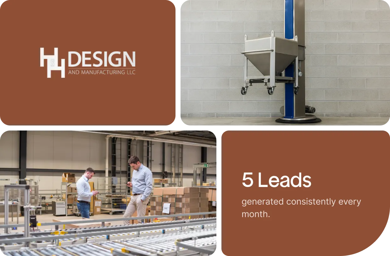 H&H Design manufactures custom industrial equipment for specialized manufacturing use cases. Their work spans multiple equipment categories with varying price points and long sales cycles.