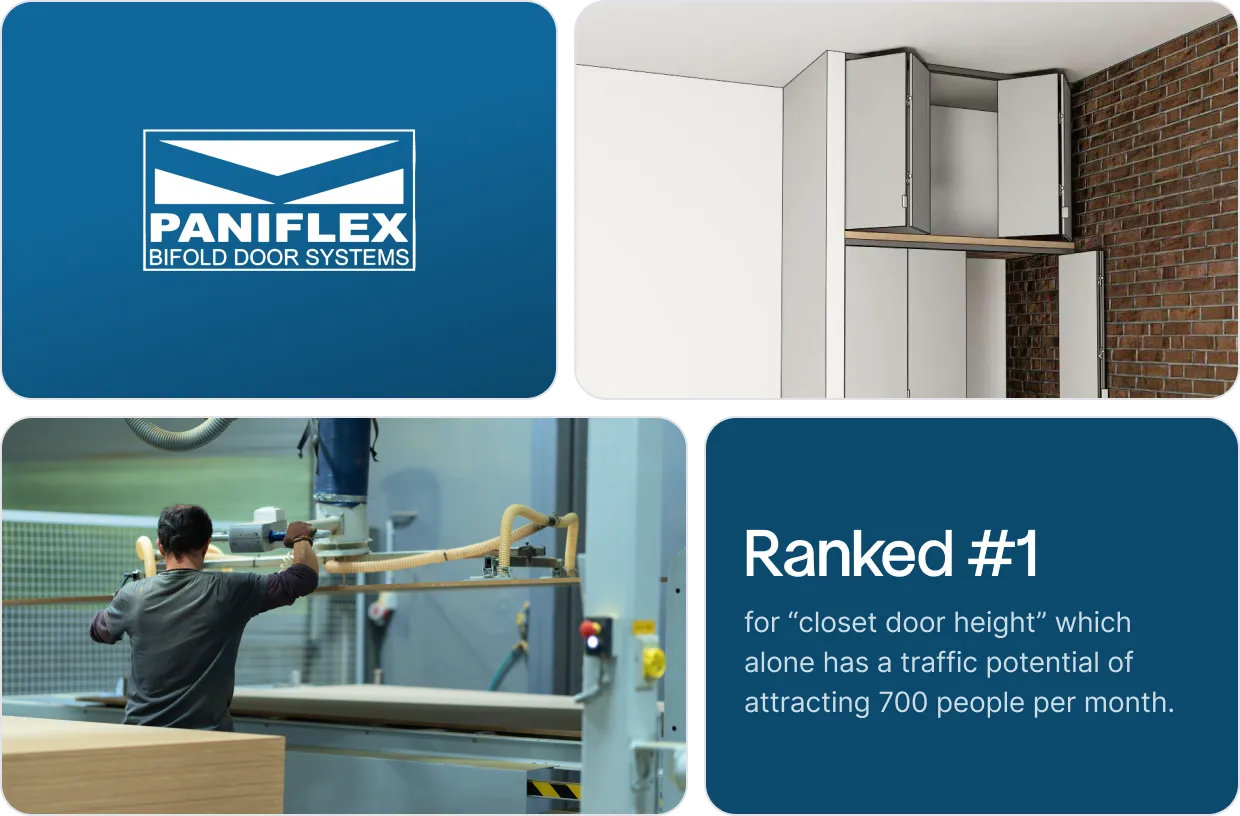 Paniflex, a closet door distributor in the USA, had a great product, but customers didn't know they existed. We helped them change that. By simply answering the right questions online, at the right time, Paniflex got 113 new potential buyers in just six months.